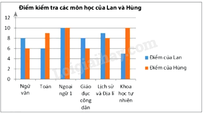 Điểm môn Khoa học tự nhiên của Hùng là 10 điểm nên điểm của Lan thấp hơn điểm của Hùng là: 10 – 5 = 5 (điểm).