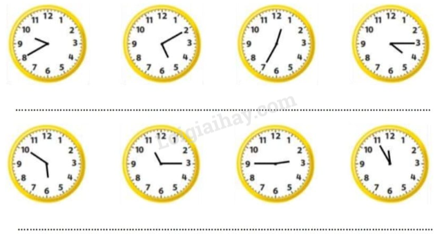 Quan sát tranh để xác định thời gian trên mỗi đồng hồ.