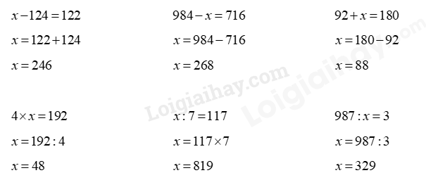 – Tìm thành phần trong phép tính cộng, trừ, nhân, chia