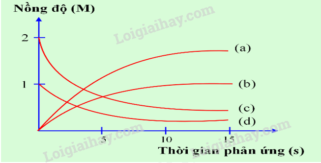 c. Đường (b) nồng độ I2 thay đổi theo thời gian: nồng độ tăng dần.