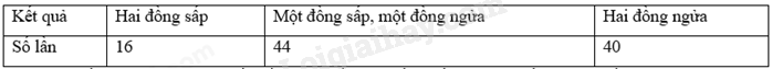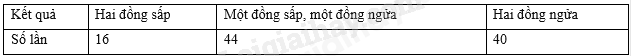 Tính xác suất thực nghiệm của biến cố: “Hai đồng xu đều xuất hiện mặt sấp sau 100 lần tung”.