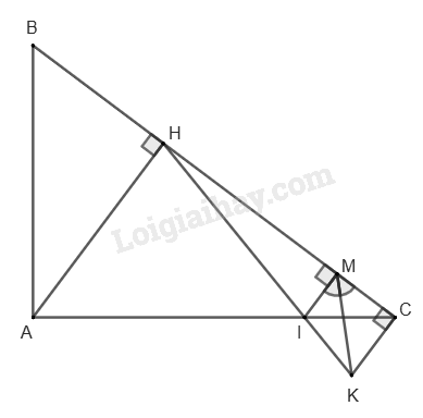 c) Chứng minh \(\widehat {HIM} + \widehat {MIK} = {180^0}\) nên H, I, K thẳng hàng.
