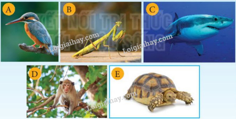A. Chim; B. Bọ ngựa; C. cá mập; D. khỉ; E. rùa.
