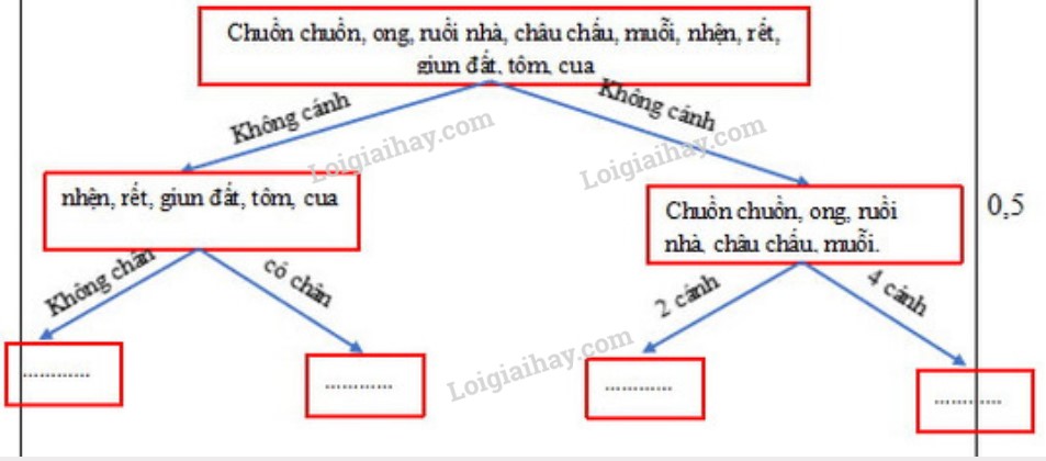 Câu 9. Trong buổi thực hành tìm hiểu sinh vật ngoài thiên nhiên, nhóm của Hồng đã sưu tầm được một số động vật sau: Chuồn chuồn, ong, ruồi nhà, nhện, tôm, cua, châu chấu, muỗi, rết, giun đất.