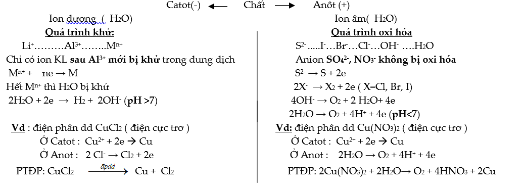 – Catot ( cực âm ):  xảy ra quá trình khử = khử cation → thu được kim loại