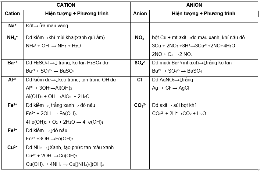 NHẬN BIẾT MỘT SỐ ION TRONG DUNG DỊCH