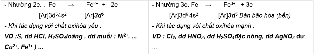 Tác dụng chất oxi hóa mạnh: Fe → Fe3+  + 3e