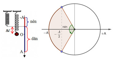 => Thời gian lò xo bị nén trong 1 chu kì là: \(t = 2\dfrac{T}{6} = \dfrac{T}{3} = \dfrac{{\dfrac{{2\pi }}{\omega }}}{3} = \dfrac{{2\pi }}{{20.3}} = \dfrac{\pi }{{30}}s\)