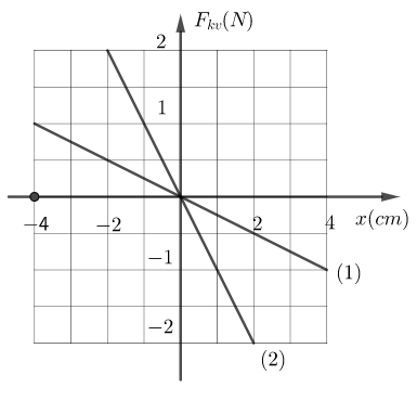 => Độ cứng của lò xo 1 là \(k = \dfrac{{{F_{1max}}}}{{{A_1}}} = \dfrac{1}{{0,04}} = 25N/m\)
