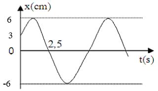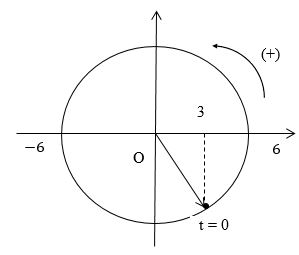 \(\left\{ \begin{array}{l}{x_0} = Acos\varphi  = 3cm\\v =  – A\omega \sin \varphi  > 0\end{array} \right. \to \left\{ \begin{array}{l}cos\varphi  = \dfrac{1}{2}\\\sin \varphi  < 0\end{array} \right. \to \varphi  =  – \dfrac{\pi }{3}\)