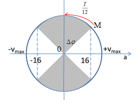 Ta suy ra: Khoảng thời gian vận tốc biến thiên từ 0 đến vị trí vận tốc có độ lớn \(16cm/{s^2}\) là: \(\Delta t = \dfrac{{\dfrac{T}{3}}}{4} = \dfrac{T}{{12}}\)