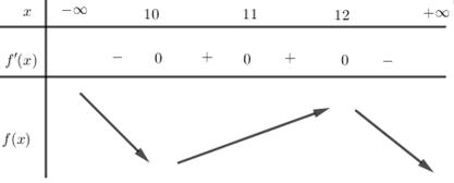 A. Hàm số đồng biến trên các khoảng \(\left( {10;11} \right)\) và \(\left( {12; + \infty } \right)\)