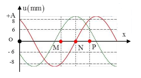 – Vận tốc của N tại thời điểm \({t_0} = {t_1} – \dfrac{1}{9}s\) là \({v_{{N_0}}} =  – {v_{{N_1}}}{\rm{cos}}\left( {2k + 1} \right)\dfrac{\pi }{9}mm/s\)