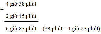 Vậy: 4 giờ 38 phút + 2 giờ 45 phút = 7 giờ 23 phút.