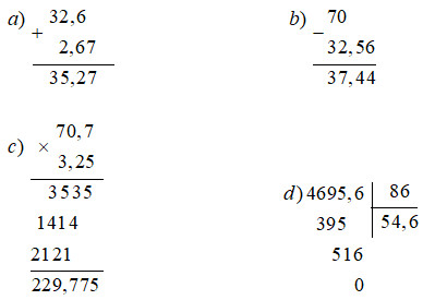 a) 32,6 + 2,67                        b) 70 – 32,56