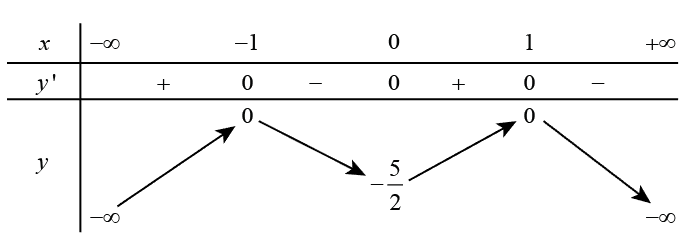 Từ bảng biến thiên, giá trị cực tiểu của hàm số là \( – \frac{5}{2}.\)