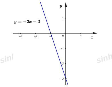 Nhận thấy: \(A\left( {0; – 3} \right),\;B\left( { – 1;\;0} \right)\) nằm trên đồ thị hàm số. Vì hàm số \(\left( {{d_1}} \right):y = – 3x – 3\) là hàm số bậc nhất nên đồ thị của nó có dạng đường thẳng, từ đó ta có đồ thị: