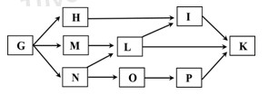 Câu 107.Giả sử lưới thức ăn trong một hệ sinh thái gồm các loài sinh vật G,H,I,K,L,M,N,O,P được mô tả bằng sơ đồ ở hình bên. Cho biết loài G là sinh vật sản xuất và các loài còn lại đều là sinh vật tiêu thụ. Phân tích lưới thức ăn này, có bao nhiêu phát biểu sau đây đúng?