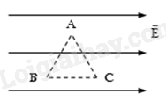 | Điện tích q = 10-8 C di chuyển dọc theo các cạnh của tam giác đều ABC cạnh 10cm trong điện trường đều, cường độ điện trường là E = 300 V/m, \(\overrightarrow E \) // BC. Tính công của lực điện trường khi q di chuyển trên mỗi cạnh của tam giác. |