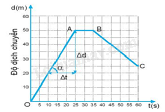 Từ đồ thị ta thấy, trong 25 s đầu người đó chuyển động thẳng từ O – A và không đổi chiều, độ dịch chuyển trong 25 s đầu là 50 m.