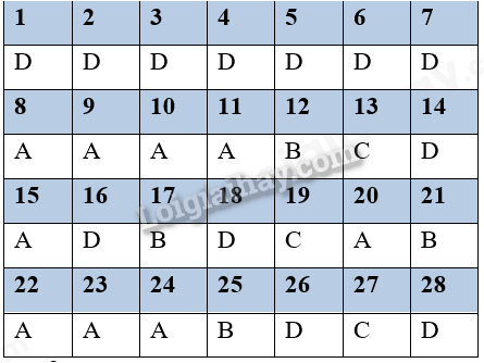 Câu 17. Chọn đáp án có từ/ cụm từ thích hợp để hoàn thành bảng sau: