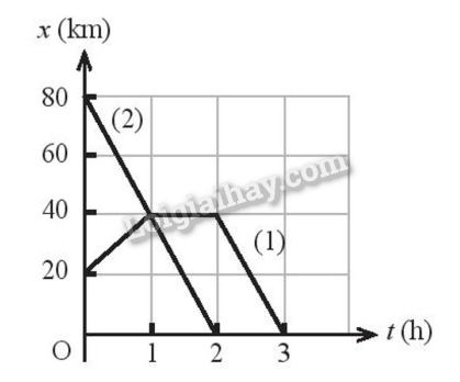 + Trong khoảng thời gian từ 0 đến 2h, xe chuyển động đều theo chiều âm với tốc độ \(v = \frac{{\Delta x}}{{\Delta t}} = \frac{{80 – 0}}{{2 – 0}} = 40km/h\)