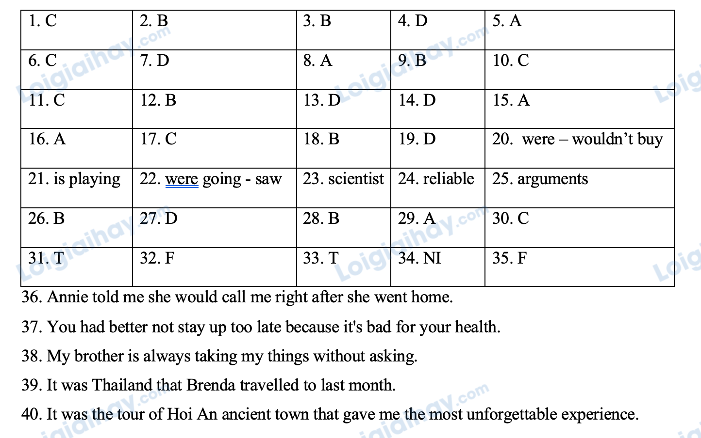 Đáp án: It was the tour of Hoi An ancient town that gave me the most unforgettable experience.
