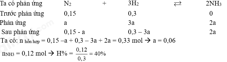 nN2 = 0,15 mol; nH2 = 0,3 mol; nhỗn hợp = 0,33 mol