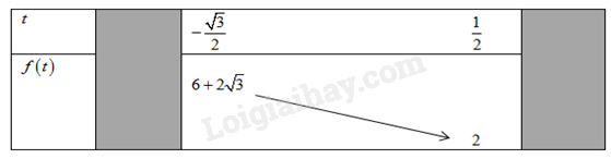 Khi đó ta có \(y = f\left( t \right) = 4{t^2} – 4t + 3\) , \(\frac{{ – \sqrt 3 }}{2} \le t \le \frac{1}{2}\).