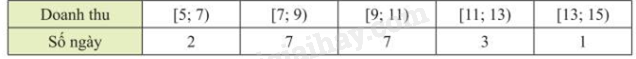 Câu 19: Doanh thu bán hàng trong 20 ngày được lựa chọn ngã̃u nhiên của một cửa hàng được ghi lại ở bảng sau (đơn vị: triệu đồng):