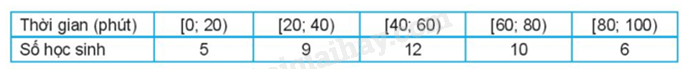 Câu 17: Khảo sát thời gian tập thể dục trong ngày của một số học sinh khối 11 thu được mẫu số liệu ghép nhóm sau: