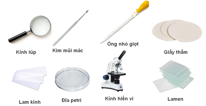 Dựa vào hình ảnh các dụng cụ thí nghiệm.
