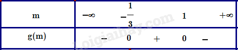 Xét \(g(m) = – 3{m^2} + 2m + 1;g(m) = 0 \Leftrightarrow \left[ {\begin{array}{*{20}{l}}{m = 1}\\{m = – \frac{1}{3}}\end{array}} \right.\).