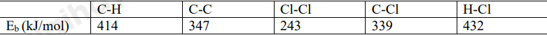 \({\Delta _r}H_{298}^0\)= E C2H6 + E Cl2 – E C2H5Cl – E HCl