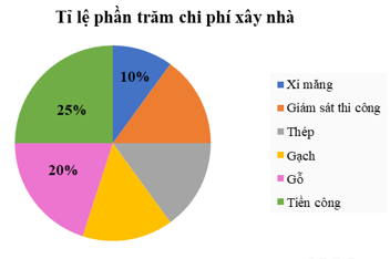 Bài 2. (1 điểm) Chi phí xây dựng nhà được biểu diễn qua biểu đồ hình quạt tròn sau:
