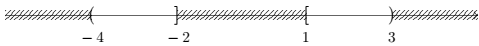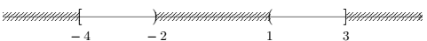 Câu 6: Biểu diễn trên trục số các tập hợp \(\left[ { – 4,3} \right]\backslash \left[ { – 2,1} \right]\) là hình nào dưới đây.
