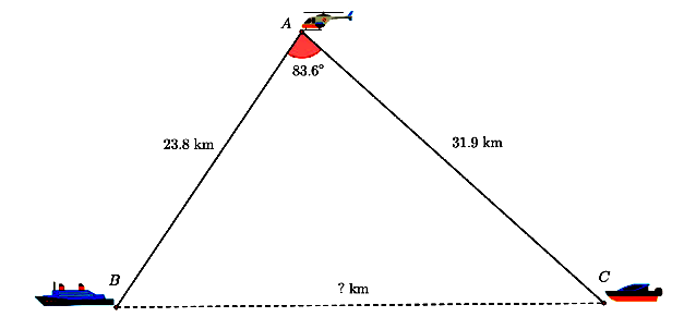 Vậy khoảng cách giữa hai tàu BC là 37,61km và độ cao của máy bay A so với mặt nước biển là 20,06km.