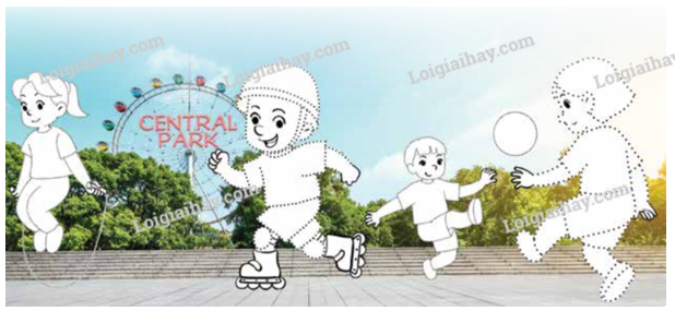 Mình tên là Mai. Mình có 3 người bạn: Tom, Phong và Linh. Chúng mình thích chơi thể thao và các trò chơi. Bây giờ chúng mình đang ở trong công viên. Mình đang nhảy dây. Tom đang trượt patin. Phong và Linh thì đang chơi bóng đá. Chúng mình đang có khoảng thời gian thật vui vẻ.