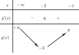 Ta có BBT của hàm số \(g\left( x \right)\) trên \(\left( { – \infty ; – 1} \right)\):