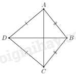 Câu 6: Tứ giác ABCD có \(AB = BC,CD = DA,\;\hat B = {90^0};\;\hat D = {120^0}\). Hãy chọn câu đúng nhất: