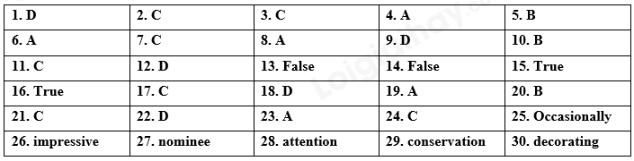 Từ câu 13 đến câu 16, thí sinh phải viết đầy đủ từ True hoặc False vào ô trả lời. Mọi cách viết khác đều không được chấm điểm. Đối với câu 17 và 18, thí sinh chỉ viết mẫu tự (A, B, C hoặc D) đại diện cho câu trả lời đúng vào phần trả lời.