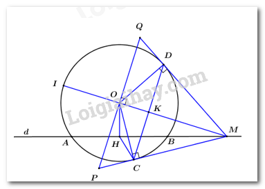 \( \Rightarrow OM\) là trung trực của \(CD\) \( \Rightarrow OM \bot CD\) tại \(K\).