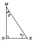 Câu 15: Trong hình vẽ bên, biết \(\angle NEM = \alpha \) và \(\angle NME = \beta \). Khẳng định nào sau đây là không đúng?