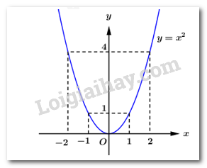 \( \Rightarrow \) Parabol \(y = {x^2}\) là đường cong đi qua các điểm \(\left( { – 2;4} \right),\,\,\left( { – 1;1} \right),\,\,\left( {0;0} \right),\,\,\left( {1;1} \right),\,\,\left( {2;4} \right)\).