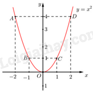 \( \Rightarrow \) Đồ thị hàm số là đường cong parabol đi qua các điểm \(O{\mkern 1mu} \left( {0;0} \right);A\left( { – 2;4} \right);{\mkern 1mu} {\mkern 1mu} B\left( { – 1;1} \right);C\left( {1;1} \right);{\mkern 1mu} {\mkern 1mu} D\left( {2;4} \right)\)