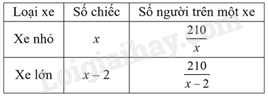 Số người trên một xe lớn là: \(\frac{{210}}{{x – 2}}\) (người)