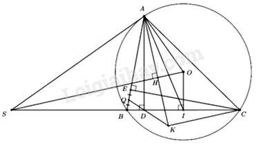 Câu 4: Cho tam giác \(ABC\) có ba góc nhọn \((AB < AC)\), nội tiếp đường tròn \(\left( O \right)\). Tiếp tuyến tại điểm \(A\) của đường tròn \(\left( O \right)\) cắt đường thẳng \(BC\) tại điểm \(S\). Gọi I là chân đường vuông góc kẻ tù điểm \(O\) đến đường thẳng \(BC\).