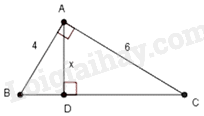 \( \Leftrightarrow \frac{1}{{A{D^2}}} = \frac{1}{{A{B^2}}} + \frac{1}{{A{C^2}}}\)\( \Leftrightarrow \)\(\frac{1}{{{x^2}}} = \frac{1}{{{4^2}}} + \frac{1}{{{6^2}}}\)