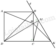 Câu 19: Cho hình vuông ABCD cạnh \(AB = 16\;{\rm{cm}}\), lấy điểm \(H\) bất kỳ trên cạnh BC \((H\) khác \(B\) và \(C)\), qua \(B\) kẻ đường thẳng \((d)\) vuông góc với DH tại \(M\), gọi \(K\) là giao điểm của CD và \((d)\).