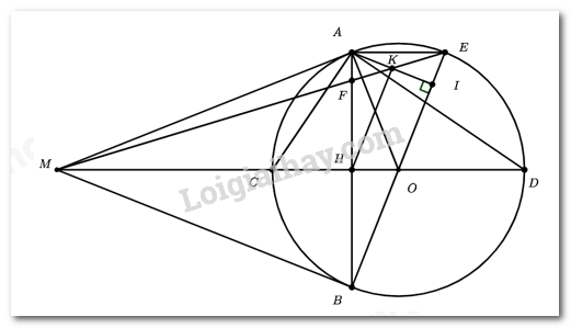 Ta có \(\left\{ \begin{array}{l}OA = OB\\MA = MB\end{array} \right. \Rightarrow MO\) là trung trực của AB nên H là trung điểm AB